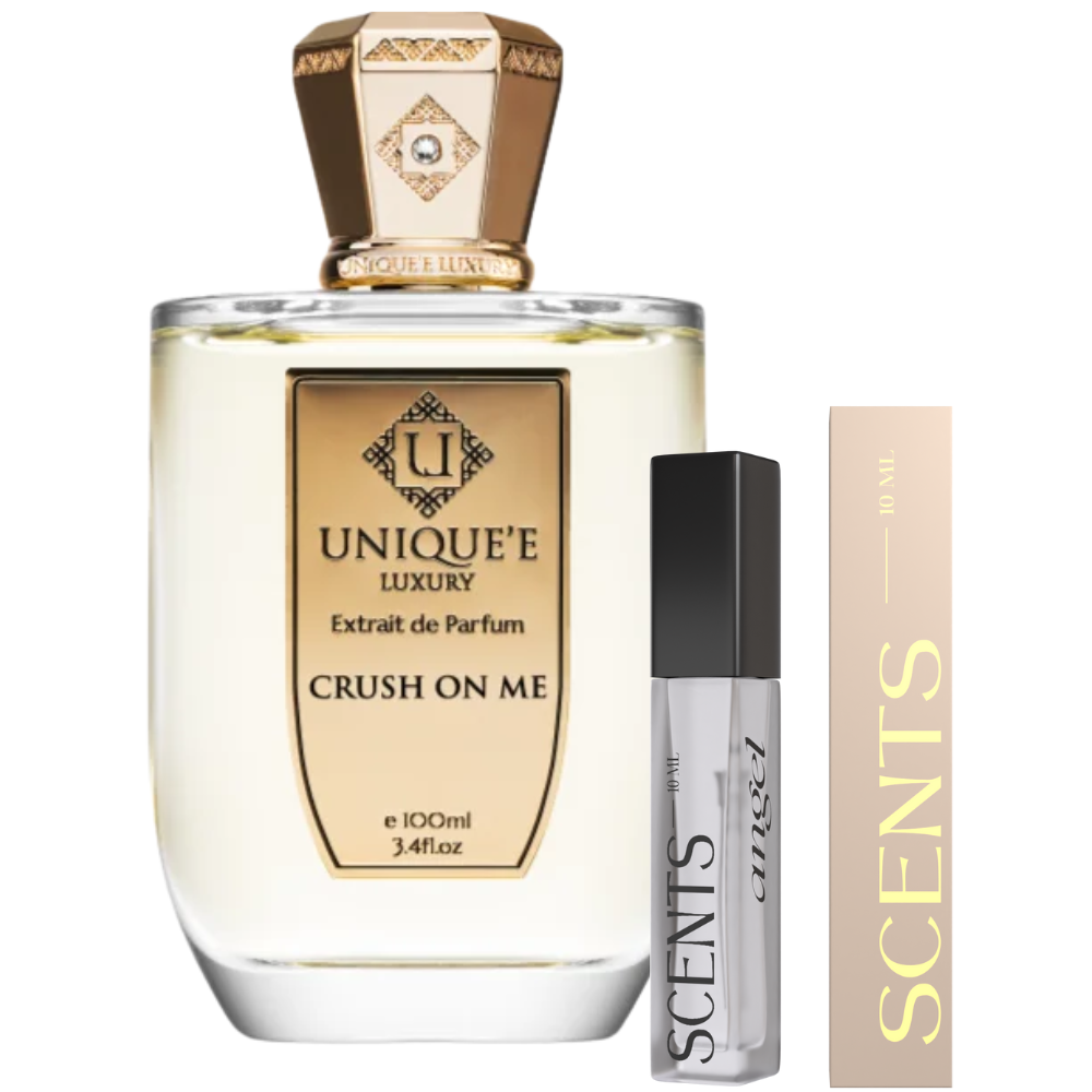 When passion meets indulgence, the result is Crush On Me—a magnetic extrait de parfum by Unique’e Luxury that instantly captivates and refuses to let go. It’s sweet, spicy, deep, and daring—crafted for those who thrive on intensity and live to leave a lasting impression. This is not a quiet scent; it’s a confident declaration wrapped in rich caramel and velvety patchouli, now available at Scents Angel in 5 ml sample packs, sleek 10 ml travel sprays, and a bold 100 ml full-size bottle.