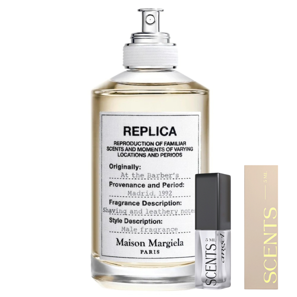 Step into a timeless world of masculine elegance with Maison Martin Margiela At The Barber’s, now available in a convenient 5 ml sample spray from Scents Angel. Inspired by the nostalgic ambiance of an old-school barbershop—leather chairs, hot towels, and the faint scent of freshly applied aftershave—this fragrance captures the spirit of grooming rituals from another era and brings them into the modern day.