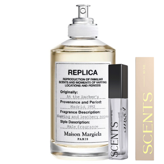 While the full-size bottle of At The Barber’s features the iconic Replica design—a clean glass bottle with fabric label and minimalist aesthetics—your sample from Scents Angel comes in a sleek 5 ml spray bottle, easy to carry and built for convenience without compromising on style or quality.