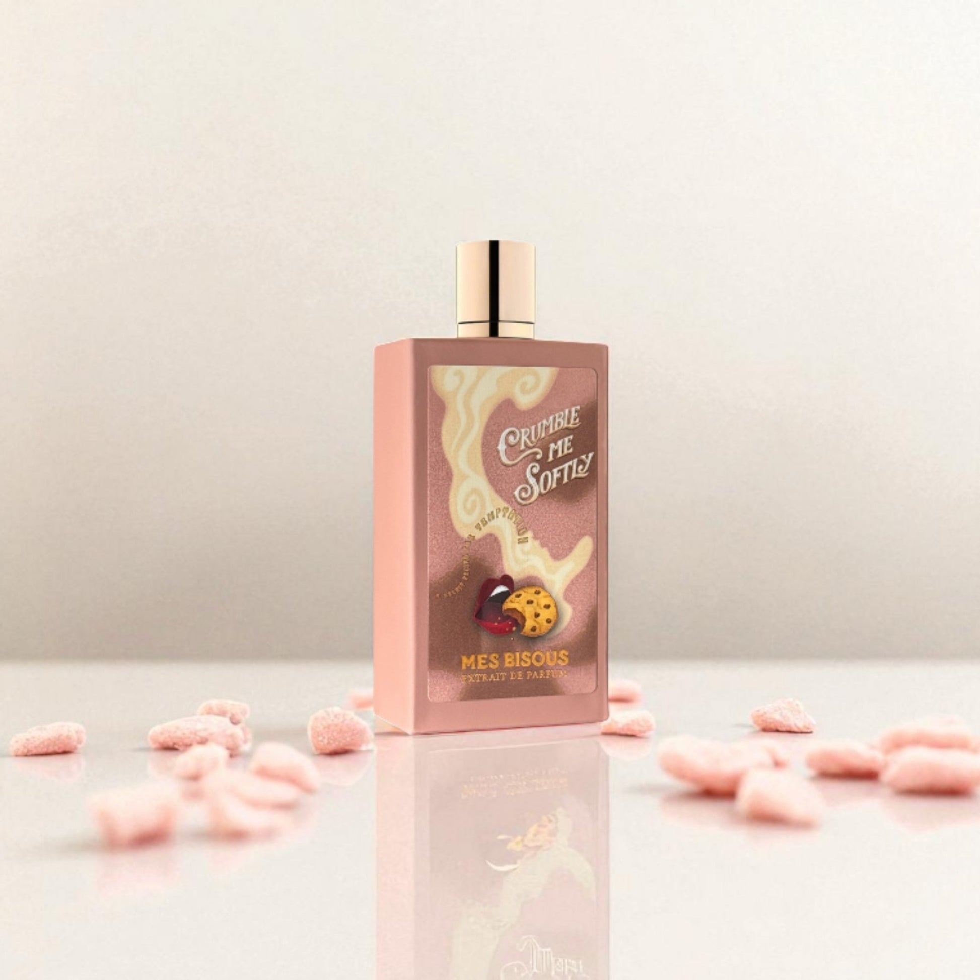 Indulge in the delicious temptation of Crumble Me Softly Extrait De Parfum by Mes Bisous, a captivating Oriental Woody fragrance for both women and men.